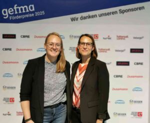 gefma-Förderpreis 2025 / 1. Platz: Preisträgerin Maren Stiballe, Fritz-Haber-Institut der Max-Planck-Gesellschaft, und Christin Kuchenbecker, Geschäftsführung Bauakademie und Vorstand gefma